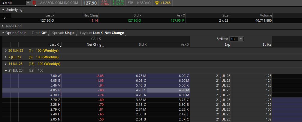 If we pick one example, say the 127 strike call options, you can buy them right now for 4.30.