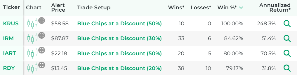 That tool ensures that you don't have to waste time flipping through stock profiles manually to find blue chip stocks that are discounted.