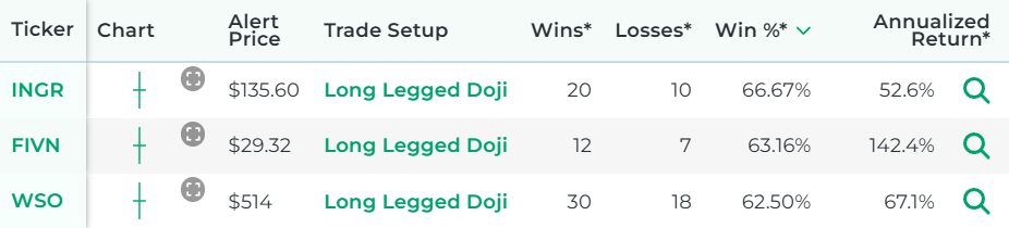 That tool ensures that you don't have to waste time flipping through stock charts manually to find stocks with a long-legged doji candle.