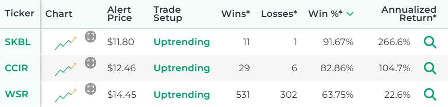 The answer is that trades based on uptrending stocks are not always profitable, but many times they are. For certain stocks, they might have a particularly strong track record of success according to our backtest research.