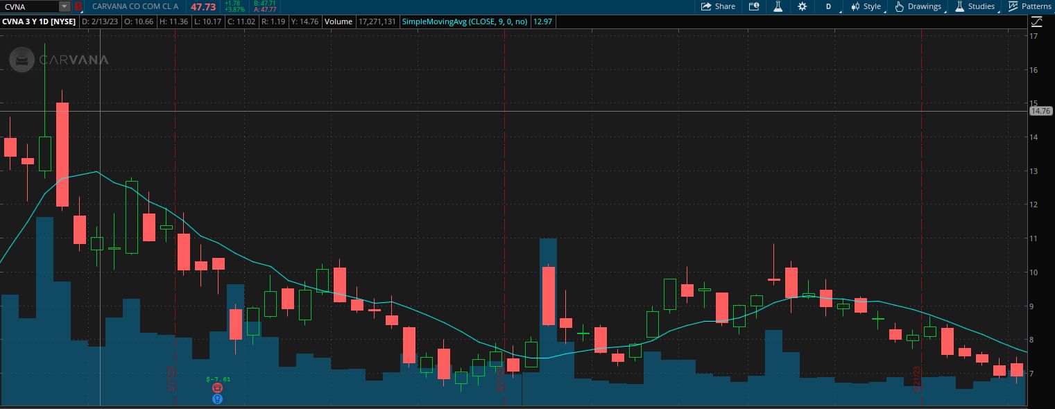 Notice the blue line on the stock chart. That is the moving average. This particular one is a 20-period moving average where each period is set to one day.