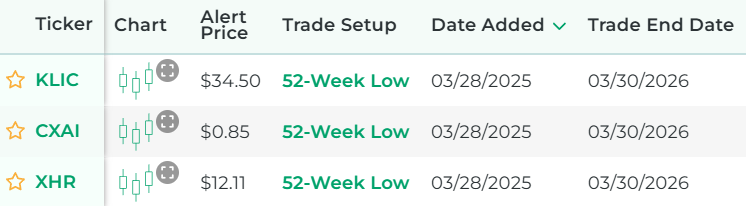 It's powered by our proprietary stock scanner, which searches once per day for stocks that have 52-week lows.