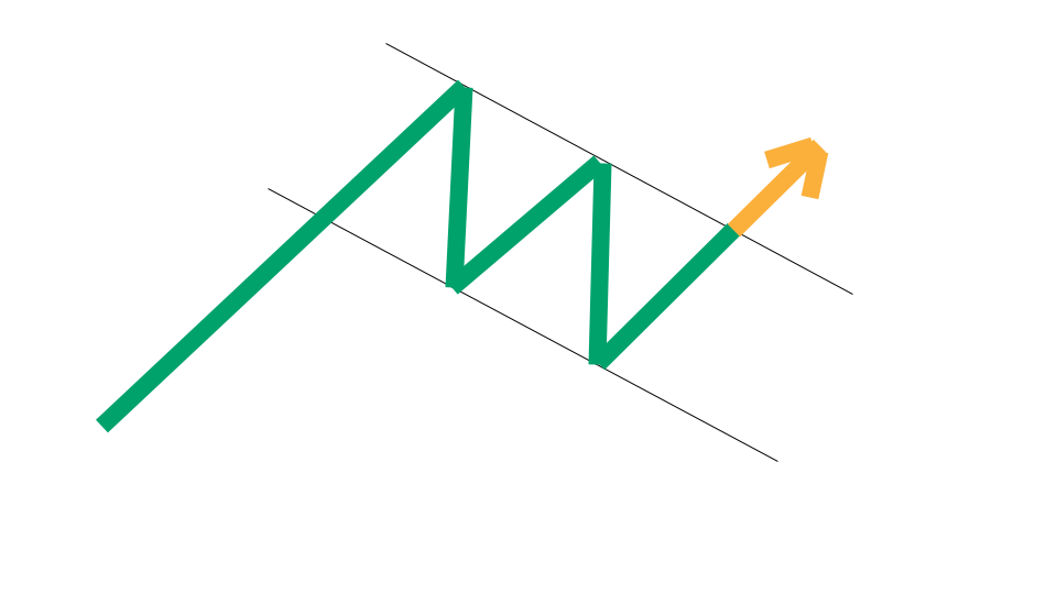 The other two trendlines serve as the "flag". They run parallel to each other to form the shape of a rectangle with its right side tilted downward.