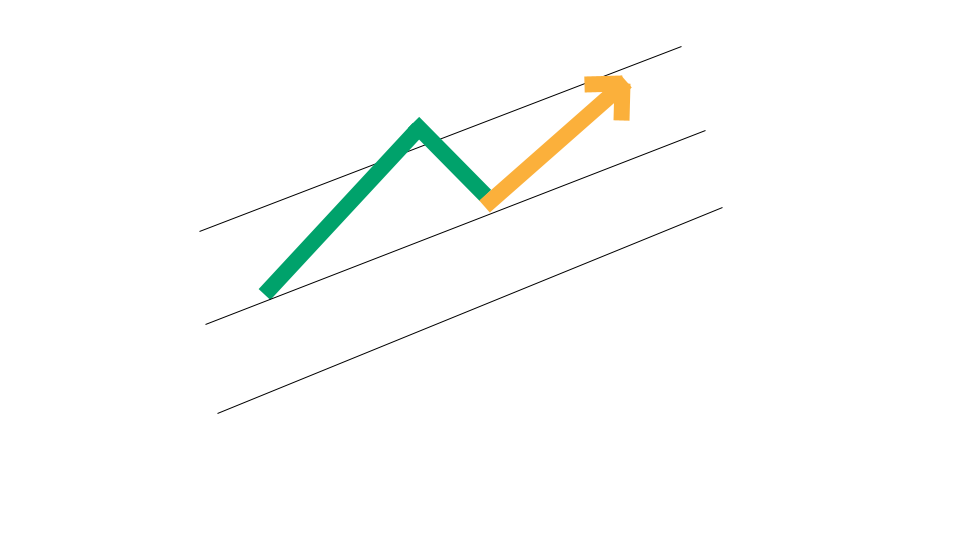 The yellow arrow represents a point when a trader might think the stock could be due for mean reversion. The trader anticipates that the stock price could go back up from this point toward the average.