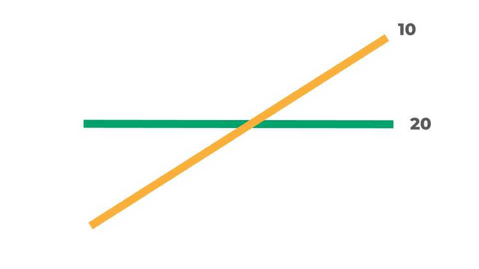 Typically one of the moving average lines measures a shorter duration than the other. For example, one moving average line might be a 10-period moving average, and the other one might be a 20-period moving average.