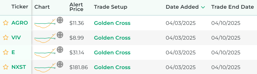 It's powered by our proprietary stock scanner, which searches once per day for stocks that have golden cross indicators.