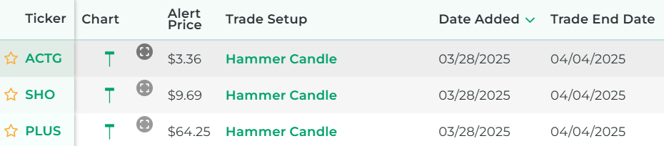 It's powered by our proprietary stock scanner, which searches once per day for stocks that have hammer candles.