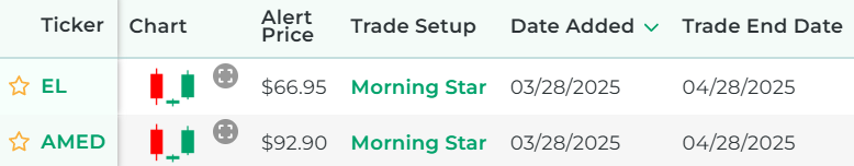 It's powered by our proprietary stock scanner, which searches once per day for stocks that have morning star patterns.