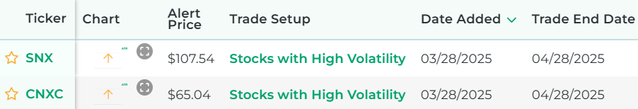 It's powered by our proprietary stock scanner, which searches once per day for stocks that have volatility.