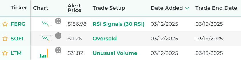 *Wins, Losses, Win Percentage, and Annualized Return are referring to how the stock performed in backtests for the Trade Setup indicated.