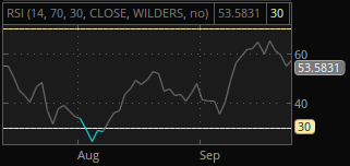 To find stocks that are oversold, our scanner simply looks for stocks that have an RSI value below 30 as of the end of the most recent trading day.