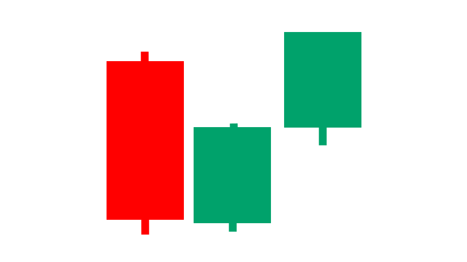 Also, the first candle fully envelopes the second candle. And the high price of the third candle exceeds the high price of the second candle.
