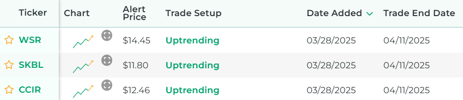 It's powered by our proprietary stock scanner, which searches once per day for stocks that have uptrending prices.