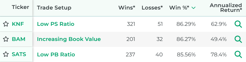 If you find a stock that has solid fundamentals, it might be an indication that it might offer a profitable investment opportunity. The challenging part is that not all stock fundamental metrics are created equal. Some perform better than others, and some stocks in particular have a good track record with particular fundamental metrics. That's the piece of the equation that we put at your fingertips with our paid service. We show you the backtested performance of each stock fundamental metric.