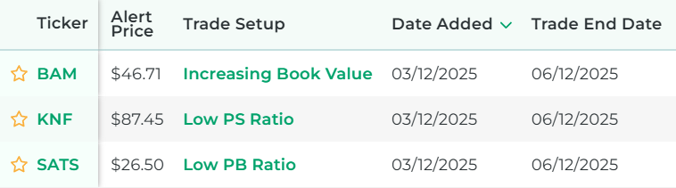 If you pay for our service, then you can enable alerts for any stock fundamental scans you want. This means you will get alerted each time our scanner finds new stock fundamentals that have a backtested edge. Alerts can be sent by email or text. You can set your preference after you sign up for the service.