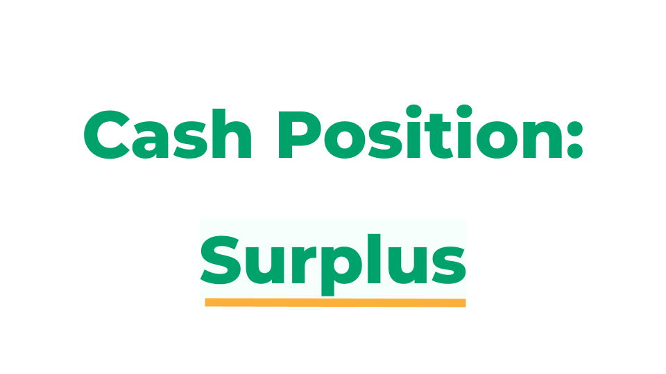 A cash surplus simply means that a company has a large cash position. This can indicate financial strength for the company and therefore might be an indicator of a good investment opportunity.